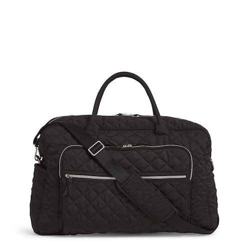 Vera Bradley Bolsa de viagem feminina Performance Twill Grand Weekender, Preto - Sarja de desempenho: este tecido resistente ao clima é durável e leve para o uso diário - Seja móvel com várias bolsas – com uma alça de 18 cm e uma alça ajustável removível de 134,6 cm, você pode pegar as alças duplas em movimento ou jogar sobre o ombro - ou utilizar a manga do carrinho para prendê-la à alça da sua bagagem - Embalagem com estilo – Ignore a bagagem de mão extra e aproveite os bolsos internos desta espaçosa bolsa – com 5 bolsos de malha para organizar seus cosméticos, produtos de cabelo, joias e outros produtos de higiene pessoal - Essenciais na ponta dos dedos – o exterior possui 1 bolso deslizante e 2 bolsos com zíper - ideal para guardar carteiras, cartões de embarque, material de leitura ou lanches para mantê-los rápidos de acesso e firmemente presos para o seu voo - Elegante, leve e com o tamanho certo – a bolsa de viagem Grand Weekender mede 38 cm de altura, 53 cm de largura e 23 cm de profundidade - dando a você uma bolsa de viagem espaçosa e essencial para sua próxima escapada