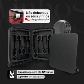 Mala para Vinhos com Colmeia – Proteção, Sofisticação e PraticidadeProjetada para transportar até 12 garrafas, essa mala é a escolha ideal para apreciadores de vinho que buscam segurança e eficiência no transporte.Destaques do Produto? Proteção Máxima: Colmeia de EPP (polipropileno expandido), resistente e reciclável, garantindo segurança contra impactos.? Mobilidade Total: Rodinhas duplas 360º, proporcionando um deslocamento suave e sem esforço.? Design Sofisticado: Combina durabilidade e elegância, perfeita para viagens curtas ou longas.Detalhes Técnicos da Mala• Material: Polipropileno de alta qualidade, leve e resistente.• Mobilidade: 4 rodas duplas com giro 360º.• Alça: Retrátil ajustável em alumínio.• Capacidade: Aproximadamente 12 garrafas.• Peso: 5,5 kg.• Dimensões: 74 cm (Altura) x 48 cm (Largura) x 13 cm (Profundidade).Detalhes Técnicos da Colmeia• Material: EPP (polipropileno expandido), reciclável e altamente resistente.• Capacidade: Armazena 12 garrafas de até 900 ml com total segurança.• Dimensões: 47 cm (Altura) x 67 cm (Largura) x 10 cm (Profundidade).Garanta agora sua Mala para Vinhos com Colmeia e transporte seus vinhos com total segurança e praticidade!