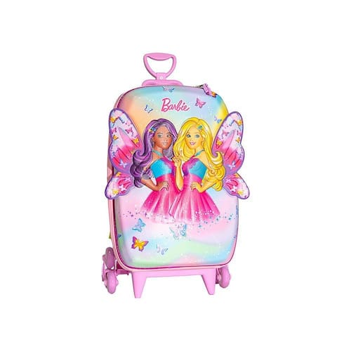 01 Mala Infantil Barbie Fada 3D com Rodinhas - Multicolorida