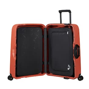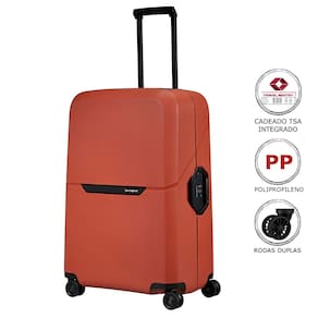 - Marca: Samsonite - Modelo: Magnum Eco - Malas em Polipropileno, material de alta qualidade. - Cadeado TSA acoplado. - Rodas Duplas com Giro 360º - Capacidade mala pequena de 38L - Sistema de travamento de 3 pontos - Fecho sem zíper - Alça de transporte superior - Divisória interna de várias alturas - Peso leve - Interior removível - Rodas silenciosas - Bolso interno - Etiqueta de identificação