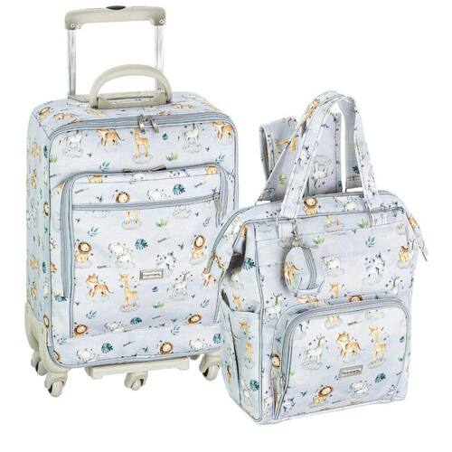 Kit Mochila Multifuncional + Mala de Rodinhas Safari Baby Cinza - Fazendo Arte- Mochila Multifuncional Fazendo Arte Safari Baby Cinza.Na medida certa para te acompanhar, a Mochila Multifuncional Fazendo Arte Safari Baby Cinza protege seus objetos e deixa tudo sempre organizado com seu amplo espaço interno. Produzida em material resistente, o modelo é perfeito para todos os estilos, sendo um item indispensável para quem quer praticidade, tendo os seus pertences sempre à mão com conforto e segurança.Ideal para o dia a dia, leve e resistente e combina com vários ambientes como, escola, academia, trabalho seja aonde for tenha praticidade para transportar seus objetos.As Mochilas Multifuncionais da Fazendo Arte investem em toda a sofisticação e qualidade, com a textura personalizada e em cores marcantes. A Mochila é espaçosa e prática.Medidas: 43 x 33 x 24 cm.- Mala de Rodinhas Fazendo Arte Safari Baby Cinza.As Malas de Maternidade com Rodinhas da Fazendo Arte são funcionais e modernas. Ideais para a chegada do seu bebê e futuras viagens em família.Ela é confeccionada com materiais impermeáveis interna que facilitam a limpeza e garantem a durabilidade. Por fim, ela também tem suas rodinhas todas 360º com extensor, tamanho desenvolvido para viagens dentro da cabine de avião, ou seja, não é necessário despachar a mesma. Todos os produtos são confeccionados em Poliéster e PVC e recebe um tratamento especial com impermeabilizante para fácil limpeza e durabilidade.Medidas: 57 x 38 x 22 cm.Cuidados com o seu produto: Não deixar de molho, usar sabão neutro, não torcer, secar à sombra.Composição: Forro PVC poliéster, sendo resistente e prática.