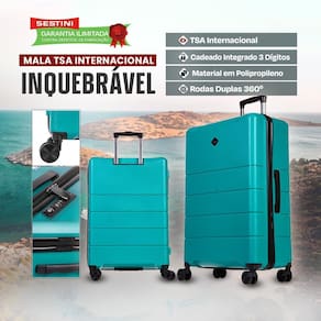 Mala Sestini Luxo 23Kg Para Despachar Polipropileno E Cad/ Tsa Bem-vindo à Trilha Malas Somos especialistas em malas, sacolas e mochilas, trazendo produtos das melhores marcas com atendimento de excelência. Loja física: Alphaville Barueri / SP Plataformas online: Encontre o melhor para sua viagem Mala de Viagem Turquia Viaje com estilo, segurança e praticidade com a Mala de Viagem Turquia. Projetada para atender todas as suas necessidades, esta mala combina design moderno, durabilidade pelo material de alta qualidade e funcionalidade. Características Principais: Marca: Sestini Material: Polipropileno Em comparação com o ABS, este material é muito mais resistente e está presente nas malas de qualidade superior : Vitalícia Sistema Spinner: 4 rodas duplas com giro 360 para fácil mobilidade Carrinho: Retrátil em alumínio com botão liberador Alças: Superior e lateral reforçadas Cadeado: TSA, máxima segurança em viagens internacionais Detalhes Internos: Logotipo: Frontal, destacando a marca Painel Divisor: Com zíper Bolso Telado: Para objetos delicados Cinta Elástica: Mantém roupas e pertences organizados Forro: Poliéster completo Especificações: Dimensões da Mala Média 23kg: 62 x 41 x 22 cm Sofisticação e praticidade em cada detalhe A cor é igual à do anúncio Sim, nós da Trilha tomamos um cuidado adicional ao tirar nossas fotos para o anúncio A mala possui cadeado de segurança Sim, a mala vem equipada com um cadeado TSA para garantir a proteção dos seus pertences. O cadeado TSA possui uma chave mestra na qual a segurança dos aeroportos internacionais podem abrir sua bagagem sem danificar o cadeado. As rodas são adequadas para todos os tipos de piso Sim, as rodas duplas são silenciosas e giram 360, oferecendo movimentação suave em diferentes superfícies. Tire suas dúvidas com a gente Marca: Não Informado