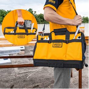 Tamanho: 16”21 bolsos para ferramentas1 Gancho para fita métricaMaterial: poliéster 600DAlça acolchoada macia para maior confortoAlça de aço forte e alça de ombro para fácil transporteBase de plástico reforçada para maior durabilidade