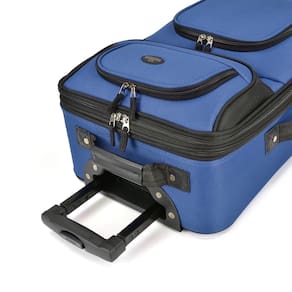 U.S. Traveler Rio Conjunto de bagagem de mão expansível de tecido robusto, Azul, Mala leve e macia, com rodinhas de 50,8 cm - Apaixone-se pelo nosso conjunto de bagagem mais acessível, feito com estrutura de poliéster de alta qualidade que exala elegância e sofisticação. - Deslize sem esforço pelo aeroporto com nosso sistema interno de botão retrátil de luxo e alça de travamento automático que oferece fácil manobra. - Mantenha suas mãos livres com a alça de porquinho que permite o transporte fácil de uma sacola. - Experimente o melhor luxo com nosso interior elegante totalmente forrado, com alças de amarrar e um grande bolso interno de malha com zíper que oferece amplo espaço para organizar seus pertences. - Não sacrifique o estilo por espaço. Nosso recurso expansível oferece mais capacidade de embalagem, para que você possa trazer todos os seus itens essenciais sem comprometer o estilo.