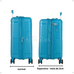 Expansível: seu maior destaque é o zíper expansor, que aumenta a profundidade da mala em até +2cm, garantindo mais espaço para roupas e acessórios quando necessário.