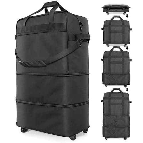 Malas com rodas expansível e dobrável, bolsa de viagem dobrável, bolsa de viagem para homens e mulheres - Fácil de usar: Projetado de acordo com a ergonomia, é mais conveniente e prático de usar. - Expansível: esta bolsa de bagagem se expande para uma bolsa despachada média de 61 cm ou 71 cm grande para espaço extra, dependendo das suas necessidades de viagem. É uma ótima bagagem móvel. - Espaçosa: com uma capacidade máxima de 90 litros, é a bolsa esportiva grande ideal para viagens em família, consignação, emigração, mudança e muito mais. - Dobrável: a bolsa esportiva dobrável de qualidade se dobra em uma bolsa compacta de 45 x 26 x 12 cm fácil de armazenar quando não estiver em uso. - Qualidade premium e durável: tecido de poliéster de alta qualidade, resistente a rasgos. Fácil de limpar e mais durável