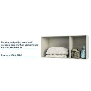 O módulo Closet Maleiro foi projetado para atender diferentes necessidades, este aéreo pode ser utilizado com cama de 138cm de largura, ou em outros cômodos da casa para guardar e organizar seus objetos. Acompanha sistema de fixação na parede.