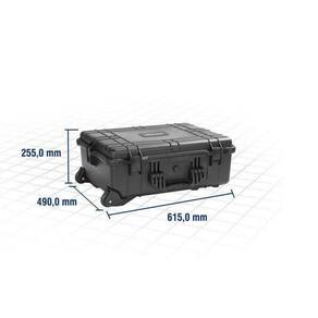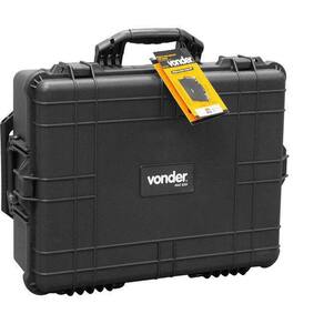 Maleta anti-impacto, com rodas, MAI 620 VONDER 1 Maleta anti-impacto Indicada para acondicionamento de produtos que requerem maior cuidado no transporte e armazenamento, pois possui proteção contra impactos e umidade IP54 . Medidas internas: C 550 mm X L 430 mm X A 200 mm Possui válvula manual de compensação que equilibra a pressão interior com a exterior, facilitando a abertura da maleta, alça extensível e rodas que facilitam o transporte, além de 4 travas e porta-cadeados. Possui na parte interna espumas removíveis que oferecem máxima proteção. Na parte superior, a espuma é tipo caixa de ovos e, na parte inferior, a espuma é pré-recortada em blocos, que se moldam ao formato e tamanho de cada objeto, conforme necessidade. Índice de proteção contra impactos mecânicos IK-06 Comprimento da maleta para ferramentas: 615,0 mm Largura da maleta para ferramentas: 490,0 mm Altura da maleta para ferramentas: 255,0 mm Material da maleta para ferramentas: Plástico PP Cor da maleta para ferramentas: Preto Capacidade máxima da maleta para ferramentas kgf : 20,0 kgf - E CDC : legal: 90 dias Marca: Não Informado