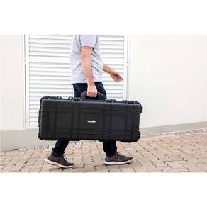 Possui na parte interna espumas removíveis que oferecem máxima proteção. Na parte superior, a espuma é tipo caixa de ovos e, na parte inferior, a espuma é pré-recortada em blocos, que se moldam ao formato e tamanho de cada objeto, conforme necessidade. Possui proteção IP67 (6 = totalmente protegida contra poeira e 7 = Protegido contra imersão temporária em água). Possui válvula manual de compensação de pressão que equilibra a pressão interior com a exterior, facilitando a abertura da maleta. Conta com índice de proteção contra impactos mecânicos (IK08), 4 travas e 4 porta-cadeados (não acompanham cadeados). Além de rodas para transporte, facilitando a movimentação.