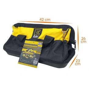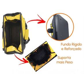 - Maleta de Lona para Ferramentas com 18 Bolsos - Tamanho: 42 x 23 x 26 cm C x L x A maleta cheia - Cor: Preto e Amarelo - Com 10 Bolsos Externos e 8 Bolsos Internos - Bolsa Com Alça de Mão - Bolsos de Tamanhos Diferentes - Indicado Para Carregar Ferramentas - Fundo em Plástico Rígido Para Proteção dos Equipamentos que Estiverem no Interior da Bolsa - Material: Aço Carbono, Poliéster e Plástico PVC Marca: Não Informado