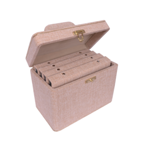 - Acompanha 4 álbuns com capa almofadada em juta com 30 folhas plásticas, comportando 60 fotos 15x21 cada