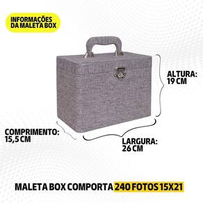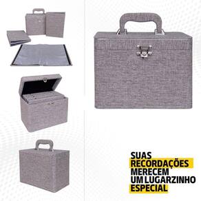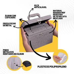 - Acompanha 4 álbuns com capa almofadada em juta com 30 folhas plásticas, comportando 60 fotos 15x21 cada