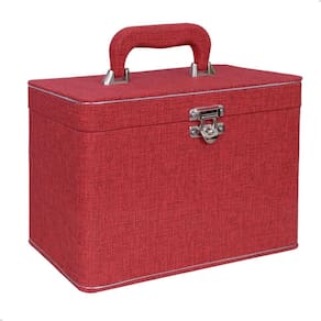 - Maleta em MDF revestida com juta e alça revestida e fechamento em metal.