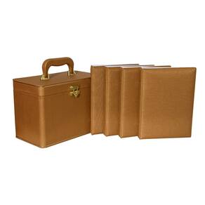 - Acompanha 4 álbuns com capa almofadada em material sintético com 30 folhas plásticas, comportando 60 fotos 15x21 cada