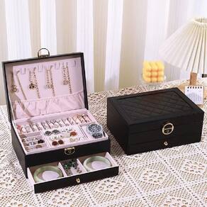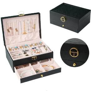 Maleta Caixa Porta Joias Estojo Organizador 2 Níveis Gaveta Anéis Brincos Pulseiras Relógio Preto