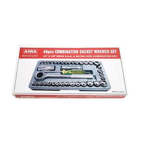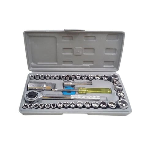 O Kit Maleta Chave Catraca Reversível Jogo de Soquetes, com 40 Peças, não pode faltar em sua caixa de ferramentas.Prática e de fácil manuseio, esta maleta foi projetada para manter seu jogo de soquetes protegido, organizado, e assim você pode levá-lo para onde quiser.Especificações:Material: Ferramentas em aço e cabos em aço ou plástico resistenteTamanho Aprox. Maleta: 24cm C x 12 cm L x 3,5cm APeso Aproximado: 1 KgItens Inclusos:01 Maleta Plástica14 Soquetes de 1/4 Polegadas Sextavados: 5/32, 3/16, 7/32, 1/4, 9/32, 5/16, 11/32, 3/8 13/32, 7/16, 15/32, 1/2, 17/32, 9/16 Polegadas01 Soquete de 3/8 Polegadas para vela de ignição 21 mm03 Soquetes de 1/4 Polegadas Octagonais: 1/4 Polegadas, 5/16 Polegadas e 3/8 Polegadas14 Soquetes de 1/4 Polegadas Sextavados: 4, 4.5, 5, 5.5, 6, 6.5, 7, 7.5, 8, 9, 10, 11, 12 e 13mm02 Soquetes de 3/8 Polegadas Sextavados: 15 e 16mm01 Catraca Reversível 3/8 Polegadas01 Cabo de 6 Polegadas01 Adaptador 3/8 Polegadas F e 1/4 Polegadas M01 Disco de Giro01 Extensão de 3 Polegadas