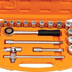 Maximize a eficiência dos seus projetos com a Maleta com Soquetes Sexatados e Acessórios 1/2'' Milímetros da Tramontina PRO. Este kit completo, com 23 peças, oferece a combinação ideal de versatilidade e robustez para trabalhos de aperto e afrouxamento de parafusos e porcas sextavadas. Fabricados em aço cromo vanádio, os soquetes garantem resistência excepcional, mesmo sob uso intenso, e são protegidos por um acabamento cromado que previne a corrosão. O design inovador com perfil Hyper Drive assegura um encaixe preciso, minimizando o risco de danificar as peças. Seja você um profissional experiente ou um entusiasta do 'faça você mesmo', esta maleta é a ferramenta essencial para reparos em casa, manutenção de veículos, montagem de móveis e muito mais. Invista na qualidade e confiabilidade da Tramontina PRO e eleve o padrão dos seus trabalhos.