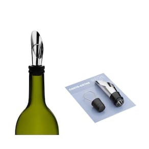 Além do seu design moderno e elegante, acompanham esta maleta um Saca-Rolha 2 estágios, um Salva-gotas anel e um Corta gotas com tampa! Ideal para evitar que, após servir o vinho, alguma gota caia na toalha. A tampa permite fechar o vinho enquanto ele está sendo degustado, porém não tem poder de vedação nem serve como salva-vinho.