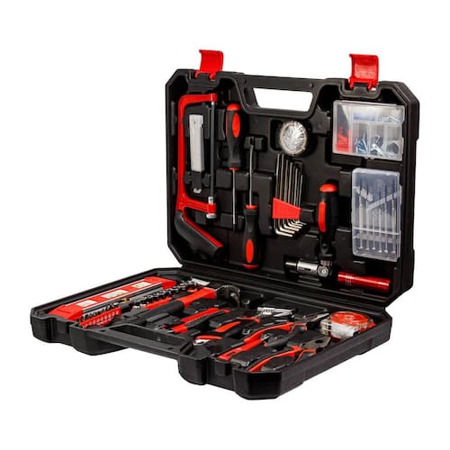 Esse conjunto inclui uma variedade de ferramentas manuais, como chaves de fenda, chaves de boca, alicates, martelos, fita métrica e outras ferramentas essenciais úteis para lidar com uma variedade de tarefas de manutenção e reparo em uma residência. Essas ferramentas são adequadas para tarefas comuns em casa, como pendurar quadros, consertar vazamentos, montar móveis e fazer pequenos reparos elétricos.