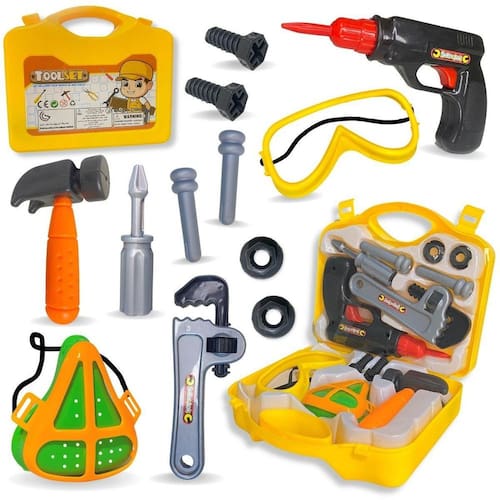 A Maleta de Ferramentas Furadeira Brinquedo Infantil C/Óculos é um brinquedo educativo e seguro para crianças a partir de 3 anos. Acompanhada por uma furadeira de brinquedo, pregos, óculos de proteção, máscara, martelo e chave grifo de plástico, este kit proporciona uma experiência completa para os pequenos construtores. A maleta contém 13 peças, incluindo a furadeira de plástico, o martelo, a chave grifo, pregos, parafusos, chave de furadeira, roscas, óculos e máscara. Feita de plástico resistente, a maleta garante durabilidade e segurança durante a brincadeira. A Maleta de Ferramentas Furadeira Brinquedo Infantil C/Óculos estimula a imaginação e o aprendizado prático das crianças. Proporcione momentos de diversão e aprendizado com este brinquedo educativo Marca: Não Informado
