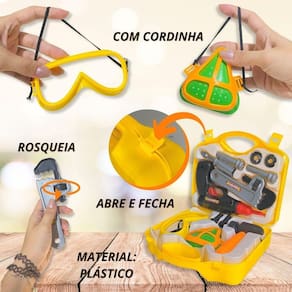 A Maleta de Ferramentas Furadeira Brinquedo Infantil C/Óculos é um brinquedo educativo e seguro para crianças a partir de 3 anos. Acompanhada por uma furadeira de brinquedo, pregos, óculos de proteção, máscara, martelo e chave grifo de plástico, este kit proporciona uma experiência completa para os pequenos construtores. A maleta contém 13 peças, incluindo a furadeira de plástico, o martelo, a chave grifo, pregos, parafusos, chave de furadeira, roscas, óculos e máscara. Feita de plástico resistente, a maleta garante durabilidade e segurança durante a brincadeira. A Maleta de Ferramentas Furadeira Brinquedo Infantil C/Óculos estimula a imaginação e o aprendizado prático das crianças. Proporcione momentos de diversão e aprendizado com este brinquedo educativo Marca: Não Informado