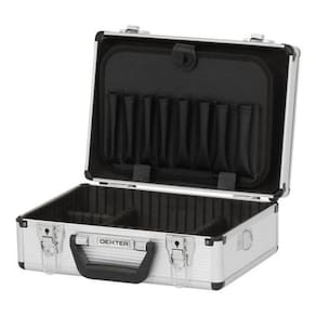 A Maleta em Alumínio da Dexter é ideal para quem necessita organizar suas ferramentas e acessórios Com 8 bolsos na parte frontal, 1 bolso na parte traseira, 5 paletas de divisores interno e cinto para alça, ela é sinônimo de praticidade e qualidade.