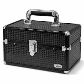 Organize seus produtos de maquiagem nas bandejas e compartimentos da maleta. Utilize as bandejas deslizantes para facilitar o acesso aos itens. Feche a maleta e transporte-a com segurança.