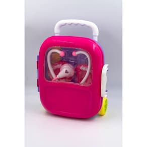 Kit completo com diversos acessórios para simular consultas e cuidados médicos.