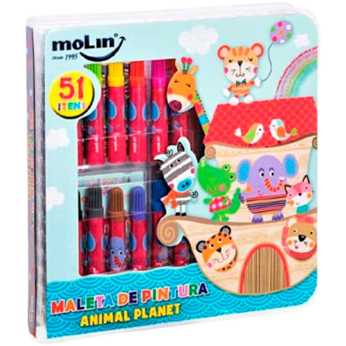Maleta de pintura infantil Animal Planet Molin 51 Itens