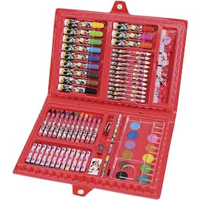 Maleta contem 72 unidade: 12 giz de cera 12 giz pastel 12 canetinhas coloridas 12 cores de tinta (palheta) 1 Régua 1 lápis preto 12 lápis de cor 1 borracha 1 cola 1 apontador 1 pincel