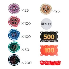 500 fichas em cores vibrantes para facilitar a identificação dos valores.