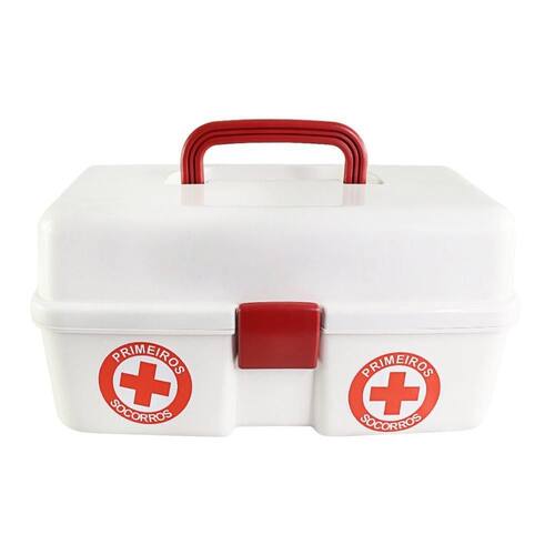 Maleta de primeiros socorros Sendo um item essencial em casa, escritório, durante viagens ou passeios ao ar livre, essa maleta será perfeita para lidar com emergências de forma rápida e eficaz.Com design moderno, conta com um tamanho ergonômico e alça para transporte, possui 10 compartimentos internos para armazenar uma ampla gama de suprimentos médicos necessários, fazendo com que fiquem organizados de maneira intuitiva para facilitar o acesso e o uso em momentos críticos, seja para lidar com cortes, queimaduras, picadas ou pequenos ferimentos.Feito com materiais duráveis e resistentes, garante que os suprimentos fiquem protegidos e prontos para o uso. especificações:material: polipropilenodimensões: alt. Fechada: 15cm x alt. Aberta: 16cm x larg.: 34cm cores: branco e vermelhopeso: aprox. 750g contém:01 maleta de primeiros socorros Marca: Não Informado