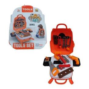 A maleta conta com 22 peças, incluindo um martelo, um parafuso, uma chave inglesa, uma chave tork, um serrote, uma chave Phillips, uma furadeira, uma tampa, duas bases laterais, um cone, uma arruela, uma tábua com ganchos para pendurar as ferramentas, uma maleta, uma alça para pendurar nas costas, duas peças que imitam madeira, uma chave de boca, um adesivo, um alicate, uma serra e uma trava.