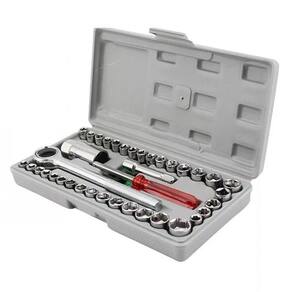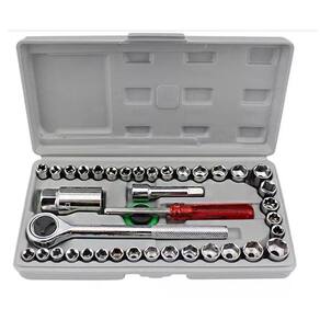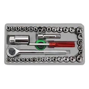 28 soquetes de 1/4, sendo: 4, 4.5, 5, 5,5, 6, 6,5, 7, 7,5, 8, 9, 10, 11, 12, 13mm, 5 / 32,3 / 16,7 / 32,1 / 4, 9 / 32,5 / 16,11 / 32,3 / 8,13 / 32,7 / 16,15 / 32,1 / 2,17 / 32,9 / 16