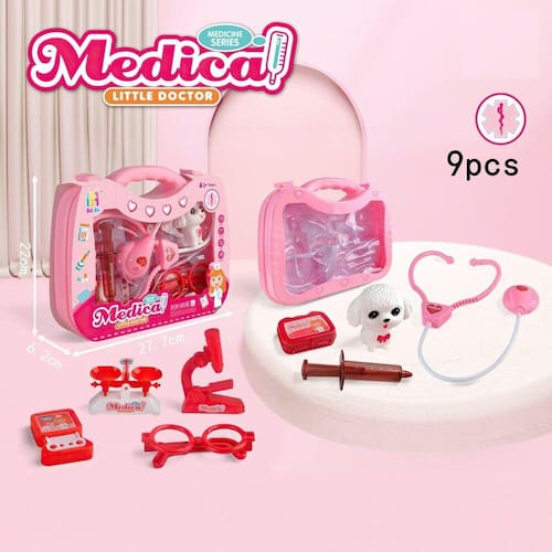 Possui estrutura firme e resistente, feita de plástico; Possui 9 acessórios para cuidar do seu pet; Com Cachorrinho para técnicas veterinárias; Cores vibrantes que chamam a atenção e estimulam a criatividade; Desenvolvida para crianças com faixa etária de 3+ anos.