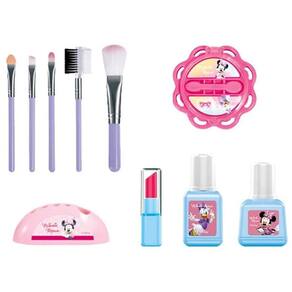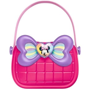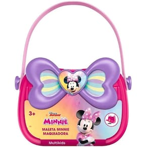 A Maleta de Beleza Minnie acompanha acompanha 10 lindos acessórios como pincéis de maquiagem, suporte, batom de faz de conta e muito mais!