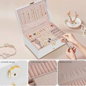 Organização Inteligente para Suas Joias Com dois níveis de armazenamento e compartimentos versáteis, esta maleta foi projetada para acomodar todos os seus itens, desde colares e pulseiras até anéis e brincos. Os 6 ganchos na tampa são ideais para colares e pingentes, evitando que eles se embolem e permitindo fácil acesso.