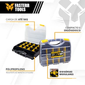 Versatilidade no Armazenamento: A Maleta Organizador Fasterr parece ser uma ótima opção para quem precisa de versatilidade e organização! Com 16 repetições e 12 divisórias modulares, você pode adaptar o espaço conforme suas necessidades. A alça para transporte e as 2 travas garantem segurança e praticidade.
