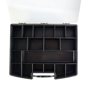 Conta com 18 espaços de armazenamento de diversos tamanhos, permite que você guarde diversos tipos de itens, desde ferramentas até acessórios de artesanato.Feita com materiais resistentes e de qualidade, garante durabilidade e seguranças para as suas ferramentas, evitando possíveis acidentes e danos.