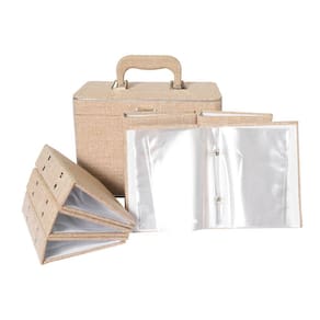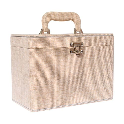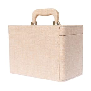 - Maleta em MDF revestida com JUTA e alça revestida e fechamento em metal.