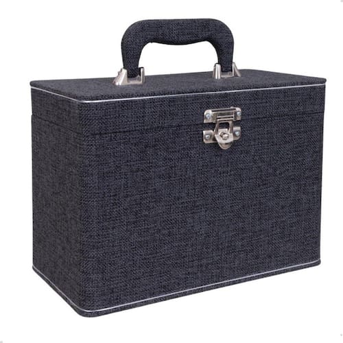 - Maleta em MDF revestida com JUTA e alça revestida e fechamento em metal.