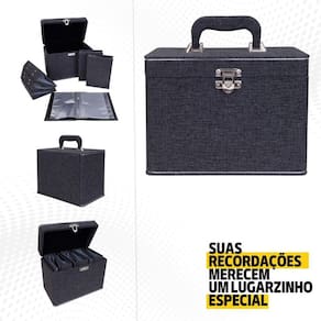 - Acompanha 6 álbuns com capa almofadada em juta com 50 folhas plásticas, comportando 100 fotos 10x15 cada