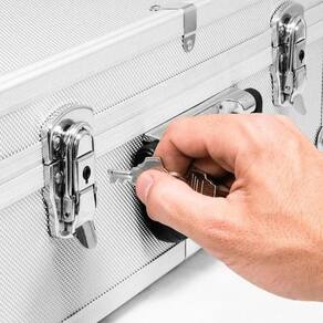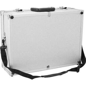 Maleta Para Ferramentas 455x330x152mm 17divisões Prata Mfv 4 Conteúdo da embalagem 1 Maleta. Acompanha: porta-ferramentas removível com 17 divisões, 2 chaves e alça auxiliar em nylon. Aplicações e dicas de uso Indicada para acondicionamento e transporte de ferramentas em geral Destaques e diferenciais Possui cantos em aço cromado e laterais reforçadas com cantoneira de alumínio, conferindo maior durabilidade, além de fivelas, travas e dobradiças também em aço cromado. Revestida internamente com material sintético macio (EVA) e externamente com alumínio. Conta com 5 divisões removíveis e ajustáveis, que adequam-se a diferentes tamanhos e formatos de ferramentas. DETALHES TÉCNICOS
