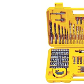 - Composição: 13 brocas HSS: 1.5, 2, 2.5, 3, 3.2, 3.5, 4, 4.5, 4.8, 5, 5.5, 6 e 6.5mm; 6 brocas para madeira: 4, 5, 6, 7, 8 e 10mm; 3 brocas para madeira ponta chata: 13, 16 e 19mm; 6 brocas para concreto: 4, 5, 6, 7, 8 e 10mm; 50 ponteiras com comprimento 25mm sendo 3 ponteiras cruzadas tipo pozidrive tamanhos PZ1, PZ2 e PZ3; 6 ponteiras tipo trafix tamanhos T10, T15, T20, T25, T27 e T30; 14 ponteiras ponta cruzada tamanhos PH0, PH1, PH2 e PH3; 10 ponteiras hexagonais tamanhos 3, 4, 5, 6 e 7mm; 3 ponteiras quadradas tamanhos S1, S2 e S3; 14ponteiras ponta chata tamanhos 6, 8, 10 e 12mm; 13 ponteiras com comprimento 50mm sendo 3 ponteiras chatas tamanhos 6, 8 e 10mm; 3 ponteiras tipo trafix T10, T15 e T20; 7 ponteiras tipo fenda cruzada tamanhos PH1, PH2 e PH3; 10 ponteiras tipo soquete tamanhos 4, 5, 6, 7, 8, 9, 10, 11, 12 e 13mm; 3 escareadores; 1 suporte magnético para ponteiras; 1 trena 2m; 1 chave com efeito catraca para as ponteiras; 2 guias para ponteiras; maleta plástica.