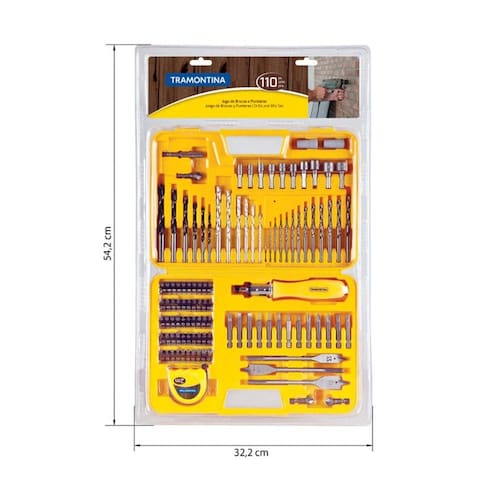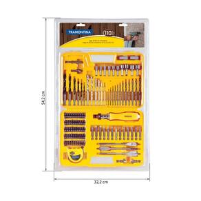 Nada como ter a ferramenta certa à nossa disposição! E para que você esteja preparado para as mais diversas situações e imprevistos, a Maleta Plástica com Brocas e Ponteiras Tramontina para Uso Doméstico 110 peças deve estar presente em sua casa. Uma maleta com composição variada e extremamente versátil: possui brocas HSS, brocas para madeira, para concreto, diversas ponteiras diferentes, trena, suporte magnético e chave com efeito catraca. Todos os itens que compõem a maleta são resistentes e vão lhe auxiliar nos momentos mais variados. Um item que não pode faltar em sua casa! Orientações Maleta plástica para facilitar o armazenamento e transporte.Composição variada que oferece versatilidade na utilização do dia-a-dia.As ferramentas são produzidas e testadas conforme normas específicas.Composição: 13 brocas HSS: 1.5, 2, 2.5, 3, 3.2, 3.5, 4, 4.5, 4.8, 5, 5.5, 6 e 6.5mm; 6 brocas para madeira: 4, 5, 6, 7, 8 e 10mm; 3 brocas para madeira ponta chata: 13, 16 e 19mm; 6 brocas para concreto: 4, 5, 6, 7, 8 e 10mm; 50 ponteiras com comprimento 25mm sendo 3 ponteiras cruzadas tipo pozidrive tamanhos PZ1, PZ2 e PZ3; 6 ponteiras tipo trafix tamanhos T10, T15, T20, T25, T27 e T30; 14 ponteiras ponta cruzada tamanhos PH0, PH1, PH2 e PH3; 10 ponteiras hexagonais tamanhos 3, 4, 5, 6 e 7mm; 3 ponteiras quadradas tamanhos S1, S2 e S3; 14ponteiras ponta chata tamanhos 6, 8, 10 e 12mm; 13 ponteiras com comprimento 50mm sendo 3 ponteiras chatas tamanhos 6, 8 e 10mm; 3 ponteiras tipo trafix T10, T15 e T20; 7 ponteiras tipo fenda cruzada tamanhos PH1, PH2 e PH3; 10 ponteiras tipo soquete tamanhos 4, 5, 6, 7, 8, 9, 10, 11, 12 e 13mm; 3 escareadores; 1 suporte magnético para ponteiras; 1 trena 2m; 1 chave com efeito catraca para as ponteiras; 2 guias para ponteiras; maleta plástica. Observações Use óculos, luvas e outros equipamentos de proteção de acordo com a tarefa a ser executada. Mantenha ferramentas de corte longe do alcance de crianças. Mantenha as ferramentas sempre limpas para um melhor agarre, pois usá-las sujas com graxa ou óleo pode causar acidentes. Armazene em local limpo e seco. Características Gerais EAN13 7891114110814 DUN14 17891114110811 NCM 8207.50.11 Peso Líquido 1,6600 kg. Peso Bruto 1,7000 kg. Metragem 0,005236 m³. Dimensões Embalagem (Compr. X Larg. X Alt.) 542x 322x 30 mm. Dimensões Produto (Compr. X Larg. X Alt.) 542x 322x 30 mm. Cor 1 FDD200 Hexa