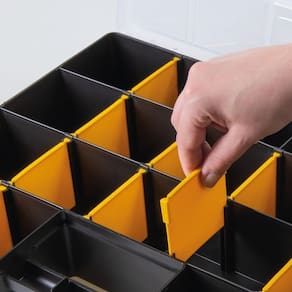 - Quantos compartimentos internos ela tem?Possui 19 compartimentos no total para a separação detalhada de materiais.
