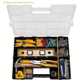 Especificações: - Corpo e divisórias móveis injetadas em polímero de alta resistência. - 19 compartimentos internos. - 14 divisórias móveis que possibilitam a personalização do espaço interno da maleta. - Tampa transparente com reforços que aumentam sua resistência. - 4 Travas para fechamento seguro (2 frontais e 2 laterais). - Projetada para fácil personalização e portabilidade. - Possibilita encaixar martelo de tamanho pequeno e médio.