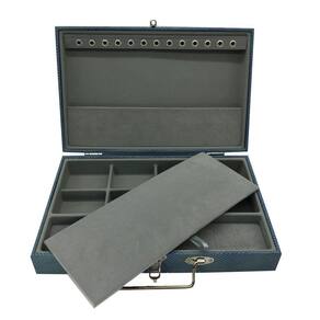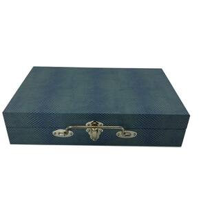 Ficha técnica - Material do exterior: Madeira - Com fechadura: Sim - Com espelho: Não - Fonte do produto: N/A - Material do interior: Couro - Quantidade de gavetas: N/A - Quantidade de compartimentos: N/A - Cor principal: Azul Marca: Eliane Jóias Ean: 7890000065504