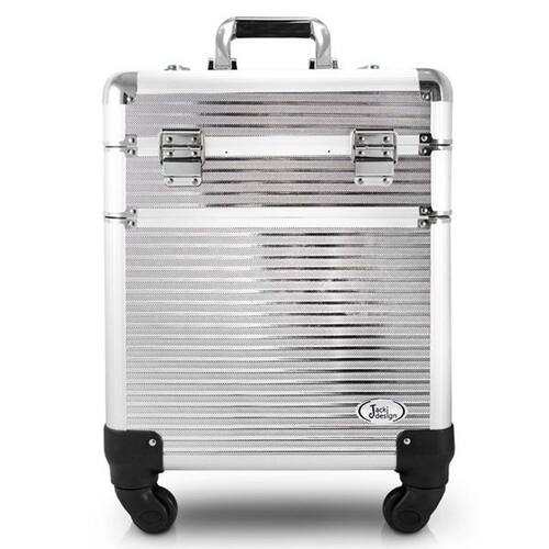 A maleta com rodinhas da Jacki Design possui 2 andares para serem usadas juntas ou separadamente, rodinhas que giram 360º graus, 1 par de chaves, amplo espaço interno e bandejas expansíveis para melhor organização.