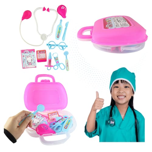 Maleta Rosa de Médico com Acessórios 11 Peças